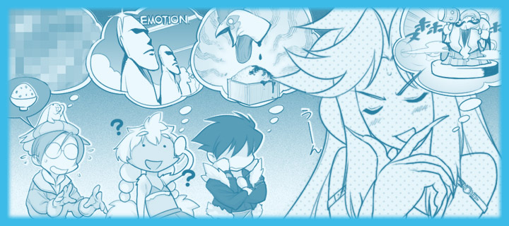 | 「詳しいことはあたしも知らないんだけどさ、なんでもとってもありがたいらしい。たぶん、あたしの予想では、昔の王さまの姿をかたどった人形か何かだと思うぞ」 「……いや、待て」 「カルはわかるの?」 「セキハンという名……聞き覚えが、ある、ような……。北央大陸東北部にかつてあった古王朝では、死者の安寧を願って供え物をしたと聞く。確か、炊いたもち米に鶏の血をまぶして朱く染める……」 「まうまう〜」 「ええー、血とか嫌だよぅ。 ありがたいっていうなら、うーん、シェラはアレだと思う。ほら、お地蔵様のすっごいでっかいやつ。竜王さまの海域にあった、石でできたでっかいお顔! あの石のお顔はずーっと昔からあるありがたいものだって、竜王さまも言ってたし」 「それを用意するのか?」 「みゃ。みー、ん〜、持ってくるのも作るのも大変……」 「まうまう〜」 みんなで考えてたんだけど、どーにもわかんなくって。 オメデタの熱を治すのにセキハンが必要なんだー、って、その時のシェラは思っちゃってたから。 レヴィが何か言っても、よくわかんなくて……。 うん。そう。 レヴィも予想してたんだよ? 確かね、こんな感じ── 「違うよシェラっ。 あ、あのですね、皆さん。ちょっと聞いてください。セキハンというのは西亨の一地方における“赤飯”と同義であると思います。でも、それは“おめでた”ではなくて女児の成長を祝う行事であって……」 ……正解かどうかわかんないんだけどね。 でもレヴィはちょっと自信ありそうな雰囲気だったかも。 「女の子の成長? コニーはオトナなんだし、もう成長とか……あ、でも、おっぱいおっきくなってるかも!」 「そうじゃなくてぇ」 「ふぇ??」 「っていうかね、熱が出ただけで“おめでた”という発想は飛躍しすぎだと思うんだよ僕は……。カルベルティさんだって違うと思うって言ってるんだし、ここはおまじないの類じゃなくて、普通に安静にしてもらうのが──」 「ふみ???」 ここでシェラはね、気付いたの。 レヴィのこの物言いだもん。 さすがにわかるよね。 レヴィはオメデタが何なのかを、知ってるってこと! 「レヴィ。知ってるの?」 「え。何が」 「オメデタっってのが何なのか、レヴィはわかる?」 「……うん。僕たちには発音が訛って聞こえてるから、意味を取れてないだけだよ。オメデタじゃなくて、おめでた。わかるよね」 「み?」 「赤ちゃんができたってこと」 「ふぇ」 ──赤ちゃん! びっくりした、っていうか、頭にきた、っていうか、なんだろ、なんだろ、なんだろ! もうね、その時、赤ちゃんって言葉を聞いた時はもう、シェラ、わけわかんなくなっちゃって……。 だってコニーだよ!? コニーはコニーなのに、赤ちゃん、赤ちゃん抱いたコニーは素敵だと思うけど、でも、でもでもでも! ──怒るよね!? ──怒って当然だよね!? 「ぎみゃーーーーーーーーーーーーッッ!!!!」 「ま、待て、待て! シェラ! 落ち着け!!」 「シェラ冷静に、冷静になって! だから、そういうことじゃないだろうって話なの!」 「みゃーーーーーーーーーーーーーッッ!!!! カル! カル君! コニーに……何したの! 何したの、何したのッ!!」 「そ……れは……」 「カルベルティさんもそこで詰まらないでくださいよ!」 「ぎみゃーーーーーーーーーーーーッッ!!!!」 もー、ね!! シェラ、わけわかんなくなっちゃって! 爪すんごく立ててカルをがっちり掴んで、引っ張って! 「こっち来なさい、カル! フゥーッ! フゥーッ!! ゆるさないんだからッ! 責任! そだよ、責任とりなさい! カルベルティ!」 「いや待て、待て……! 爪を立てて引っ張るな!」 「シェラ落ち着いてよぉぉ」 「まうまう〜」 「あーもーわかった! わかっちゃったんだから! コニーが倒れたのも苦しいのも心配なのも赤ちゃんもぜんぶぜんぶぜんぶカルのせーなんだってこと、わかった! ちゃんとして! カルベルティ! 今日からだからね! 逃がさないんだからっ!」 「何が、何からだ!」 「ぎみゃーーーーーーーーーーーーッッ!!!!」 ずるずる引っ張っていったの。 貨物室に! 「まうまう〜」 ……そいえば。 あの時また、マウマウが変な声出してたっけ?