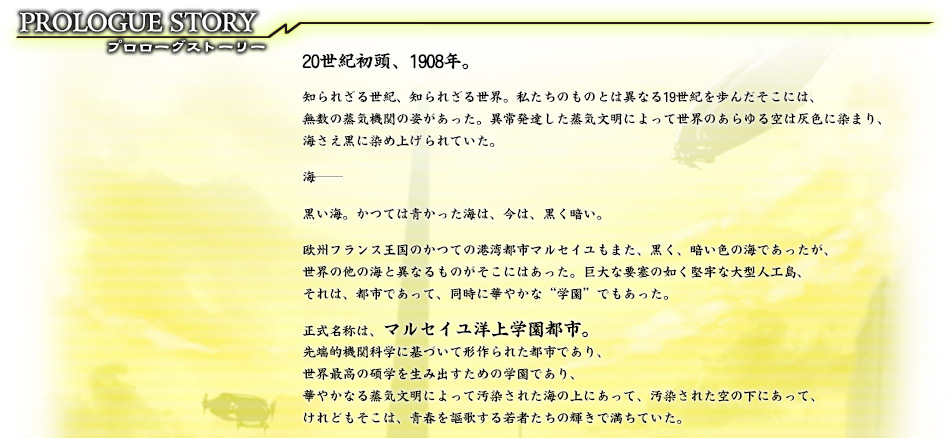 学園中央に巨大な機関塔『ディフの塔』と不可思議な尖塔『統治塔』を有し、地下の大機関2基によって島全土の動力を賄っている。ほぼ完全な機関化(自動機械化)が成されている、世界初の自動化機械都市でもある。