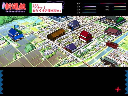 島田「ああ、これは説明用のダミーなので、屯所(左上の青い屋根)と商店(中央下付近)しか行けません」