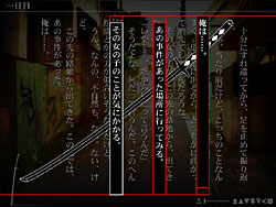 「妖刀事件」は、縦書きノベル形式のアドベンチャーゲームです。