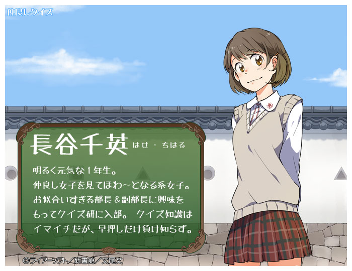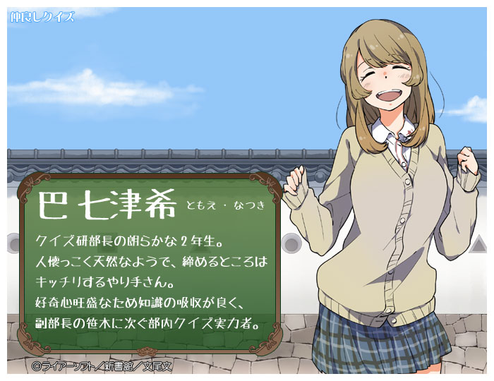 仲良し女子を見るのが大好きな新入生「長谷千英」は、部活説明会で発見した理想の仲良し先輩「巴七津希&笹木里香」に惹かれ「クイズ研究会」への入部を決意する。