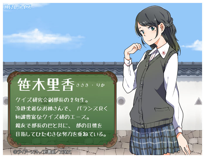 学生クイズの全国大会を目指す巴と笹木。千英と同じ趣味を持つ新入生「伊地山時乃」と仲良し先輩を見守りながら育む妙な友情。