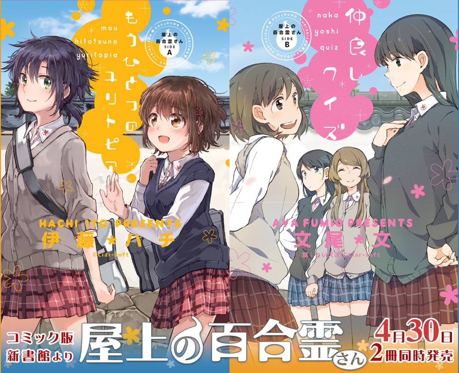 ライアーソフトより発売中の成人向け百合ゲーム『屋上の百合霊さん』が同時に2冊コミック化!