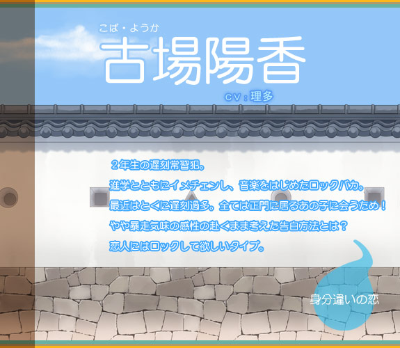 古場陽香情報 古場は学外でガールズバンドに所属している。 バンド名は「ストレンジ・マグネット」。 担当であるギターを猛特訓中。